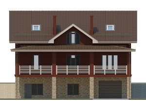 Большой двухэтажный дом с мансардным и цокольным этажами, прекрасно подойдет для участка с уклоном.